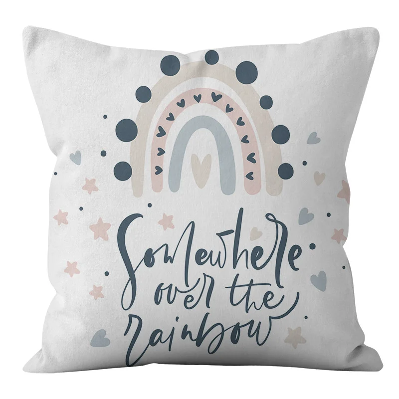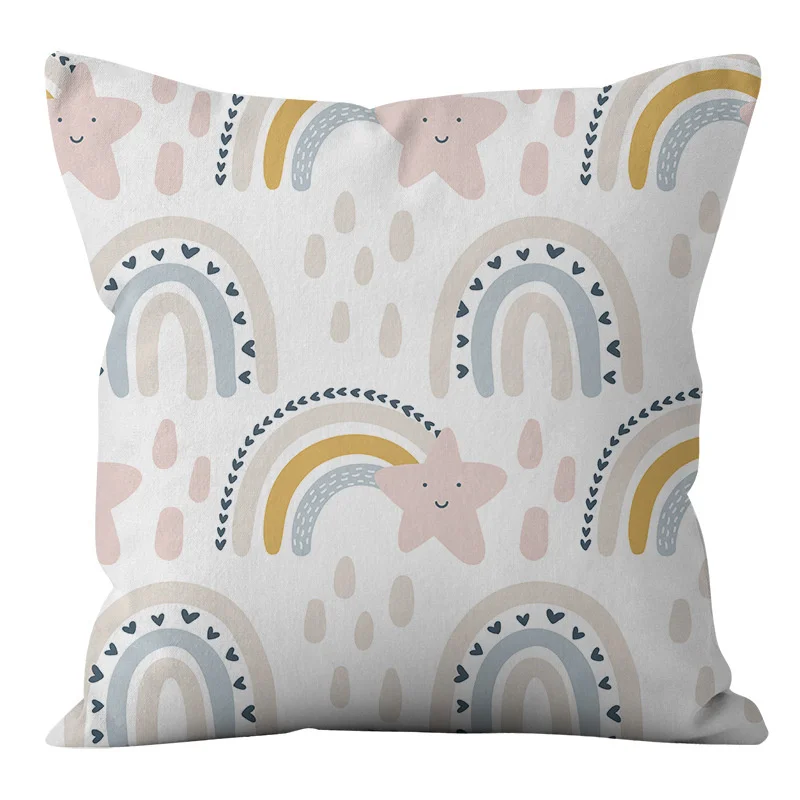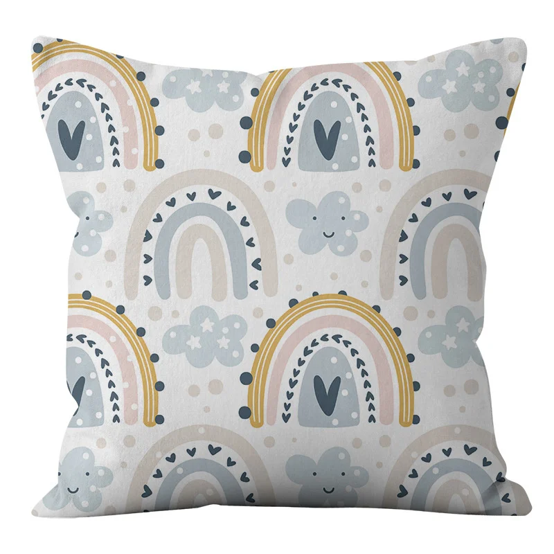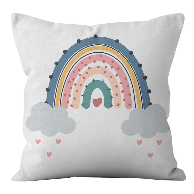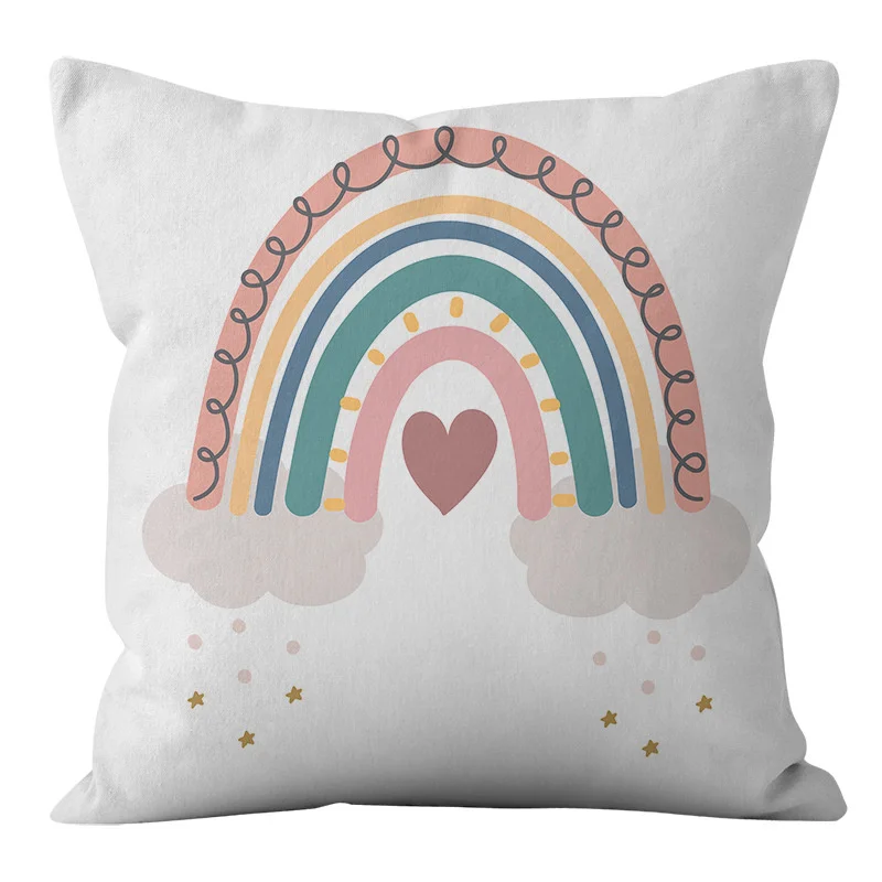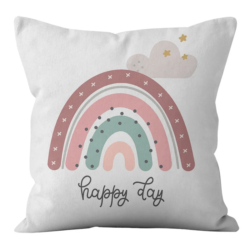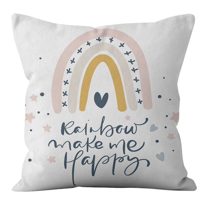 Rainbows cheer up any room! Brighten your nursery, or other room, with these soft rainbow printed throw pillow covers.